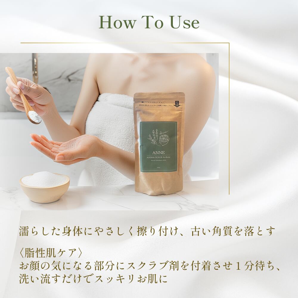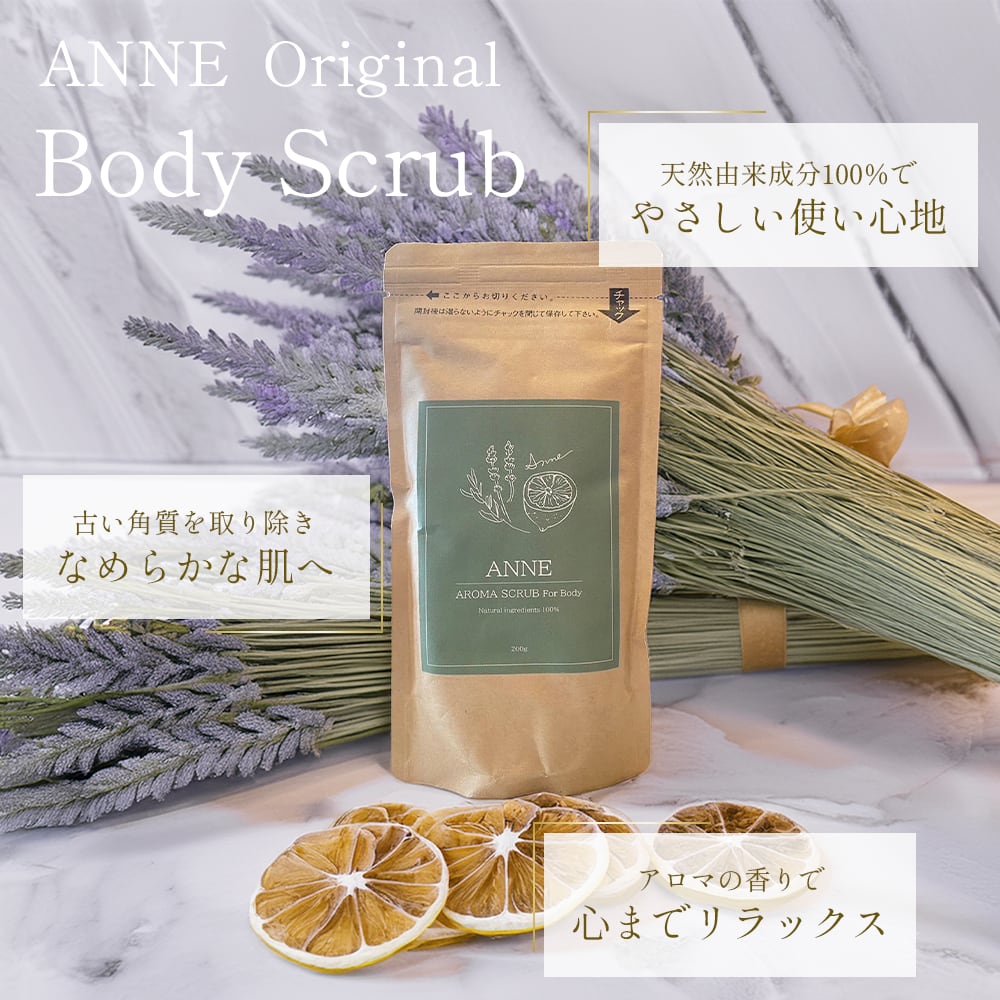 【美容の専門家が開発】アン ボディスクラブ 200g | 無添加 敏感肌 メイクアップアーティスト Kayoかかと ひじ ひざ 角質 マッサージ スクラブ パウダー かかとケア 角質ケア 角栓 重曹 ボディケア 乾燥肌 毛穴 フットケア 天然 天然由来 無添加 無着色 無香料 パラベンフリー 防腐剤フリー 洗顔 黒ずみ くすみ ざらざら ラベンダー レモングラス 精油 いい香り リラックス 自然 ナチュラル 保湿 男性 女性 子ども すべすべ つるつる スクラブ プレゼント ギフト ボディ 全身 ANNE | NailandMakebar ANNE